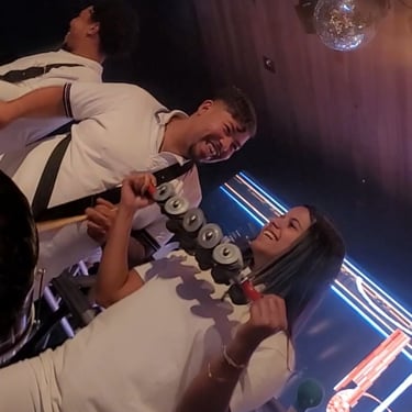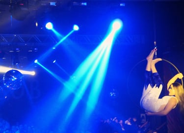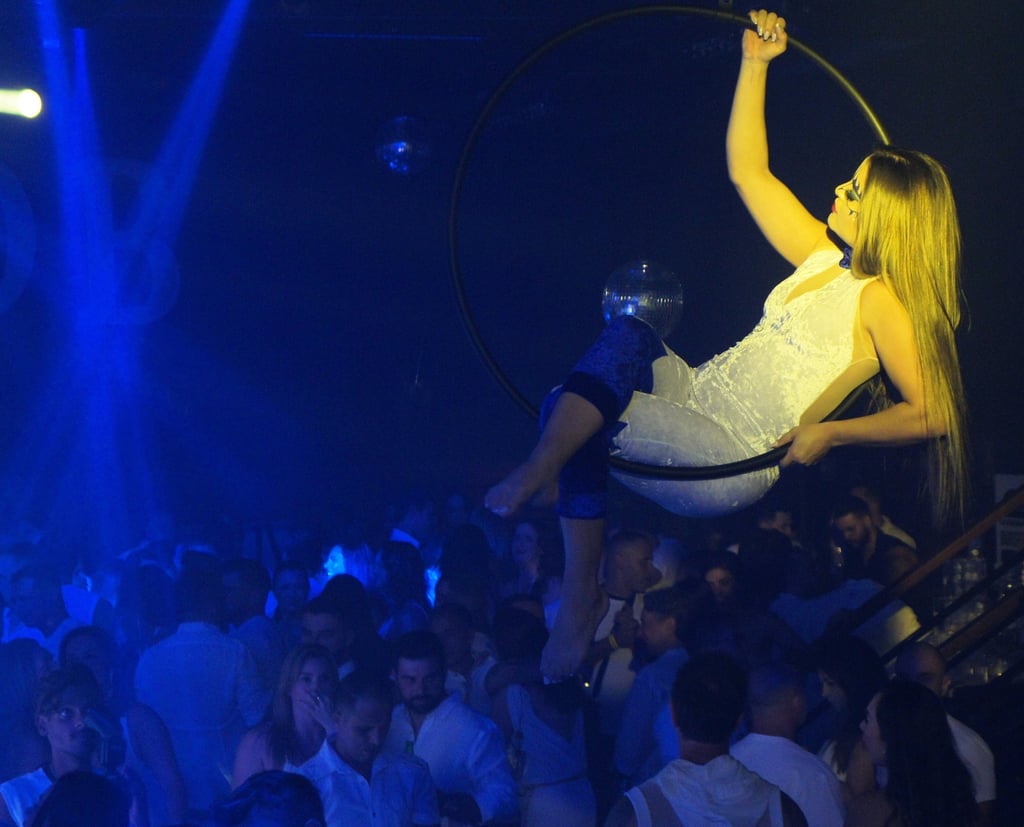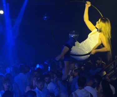 Durante a festa, os convidados foram surpreendidos com uma série de performances cuidadosamente planejadas. Uma artista em um lira (anel aéreo) encantou a todos com acrobacias sensuais e delicadas, trazendo um toque artístico ao evento.