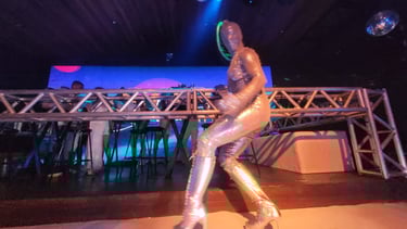 A descida pelas escadas revelava uma decoração deslumbrante. Globos espelhados e uma iluminação planejada traziam um ar sofisticado à festa. A pista comum era um convite para todos se divertirem, enquanto a área VIP, com open bar, proporcionava uma experiência exclusiva para aqueles que buscavam algo a mais. O palco elevado dos DJs, estrategicamente posicionado, oferecia uma visão completa das performances e atrações, garantindo que ninguém perdesse os momentos mais intensos da noite.