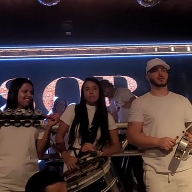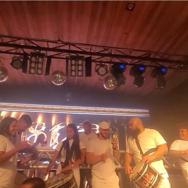 Em um dos momentos mais inesperados da noite, uma escola de samba invadiu a festa, misturando-se ao som dos DJs e elevando a energia no salão. Essa combinação inusitada manteve o público animado e envolvido até o amanhecer.